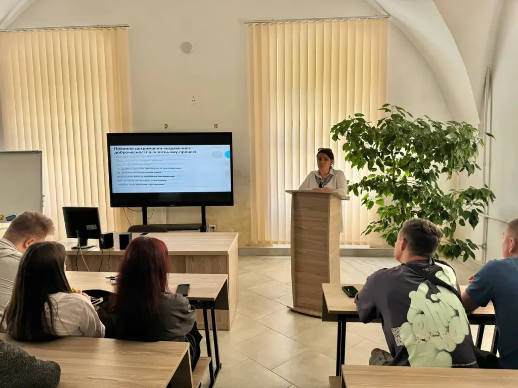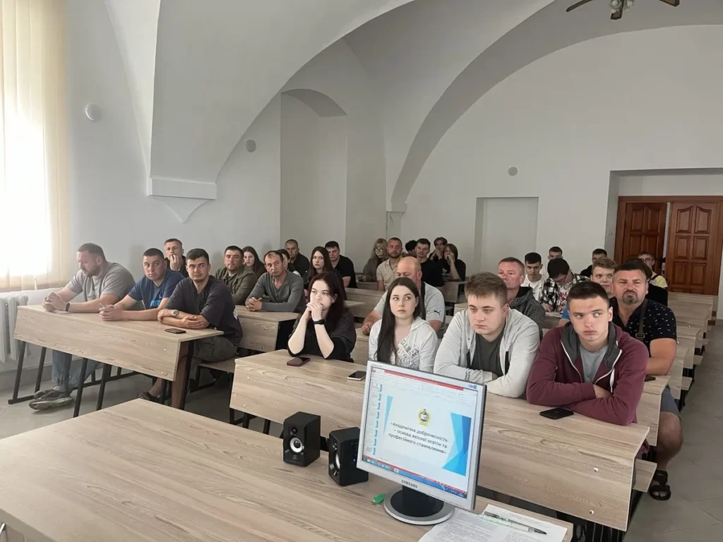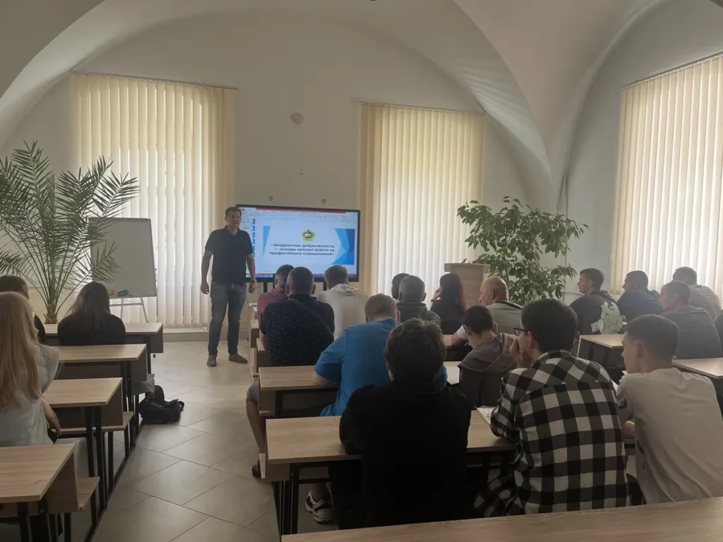 Здобувачі активно долучалися до обговорення, наводили приклади із власного досвіду, обговорювали типові ситуації, у яких проявляється недоброчесна поведінка, та шукали шляхи її уникнення.