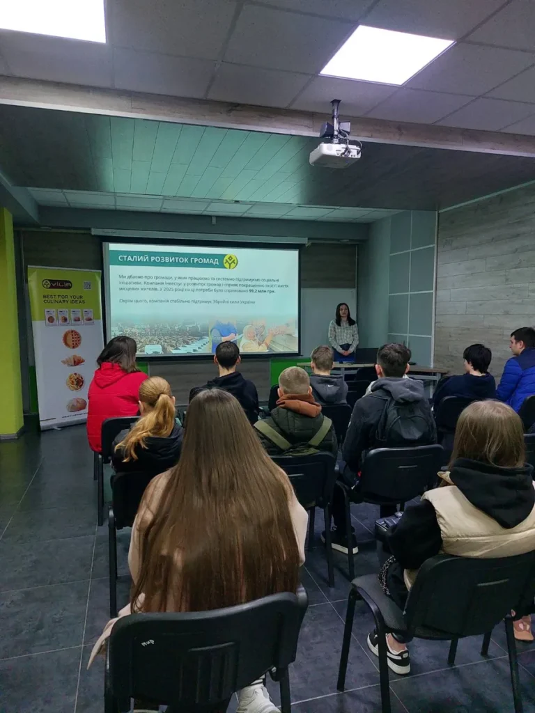 Рекрутер ГК ТМ «ВІЛІЯ» Владислав Авдійчук познайомив з тонкощами відбору кадрів, мотиваційними підходами до працівників, можливостями професійного розвитку, кар’єрного зростання та провів екскурсію на сучасний млин швейцарського виробника Buhler, де українська пшениця перетворюється на борошно, яке постачається до Польщі, Німеччини, Шотландії та країн Балтії. Ця екскурсія стала прикладом як освіта виходить за межі навчальної аудиторії і показує технічні можливості сучасних виробництв виготовляти продукцію за європейськими стандартами.