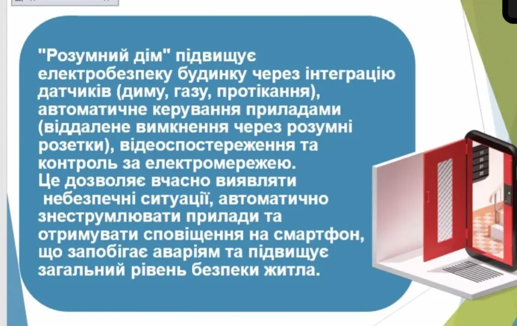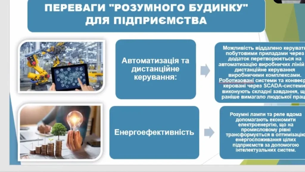 Інженер з охорони праці ДНЗ «Ковельський ЦПТО» Світлана Маїло провела віртуальну екскурсію «Від “розумного дому” до промислових технологій: нові виклики в електробезпеці», ознайомила з впровадженням автоматичних механізмів керування електрозабезпеченням будівель, прогнозованим технічним обслуговування (Predictive Maintenance) з використанням штучного інтелекту.