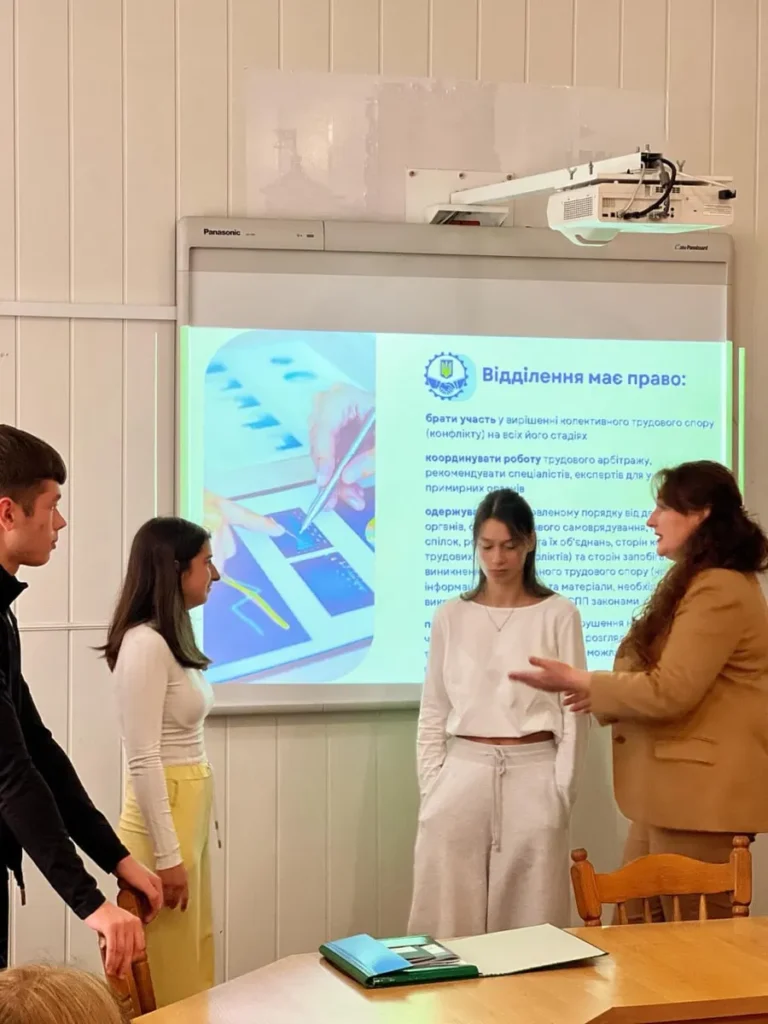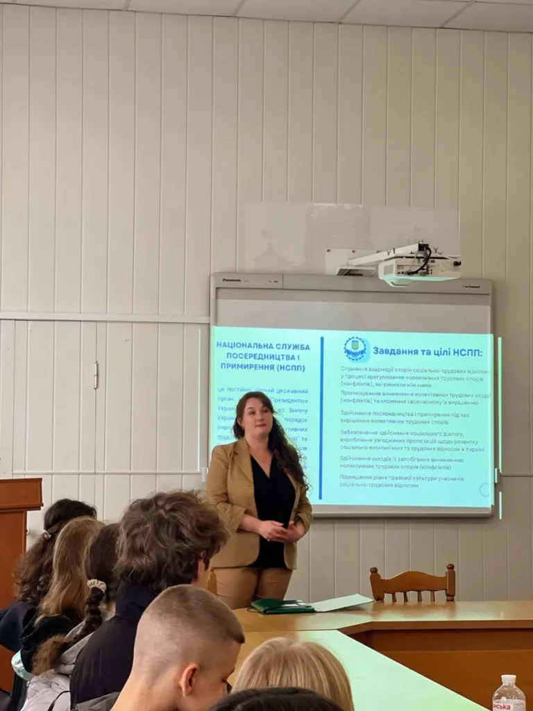 Лектор, Олена Середюк, випускниця коледжу, фахівець Національної служби посередництва та примирення, не лише глибоко розкрила теоретичні аспекти трудових суперечок, але й поділилася практичним досвідом. Були проведені практичні симуляції критичних ситуацій на підприємствах де здобувачі освіти приймали активну участь.