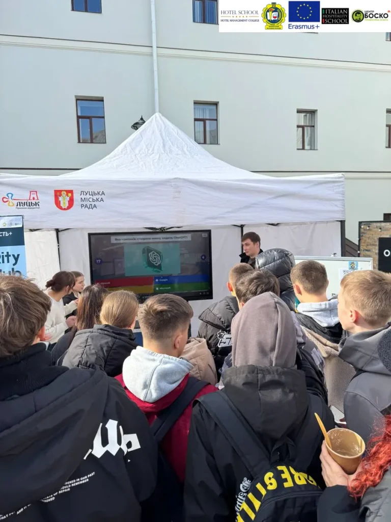 One of the festival’s most visited and interesting locations was the interactive zone of the Volyn Professional College of the National University of Food Technologies, where a college lecturer and students presented. Guests had the opportunity not only to learn about the latest industry trends but also to try out the possibilities of artificial intelligence, augmented and virtual reality for themselves, experiencing how innovation is changing the modern world of service. The location combined educational and entertainment formats: contests, quests, and quizzes were prepared for the festival guests, in which each participant could test their knowledge and wit.