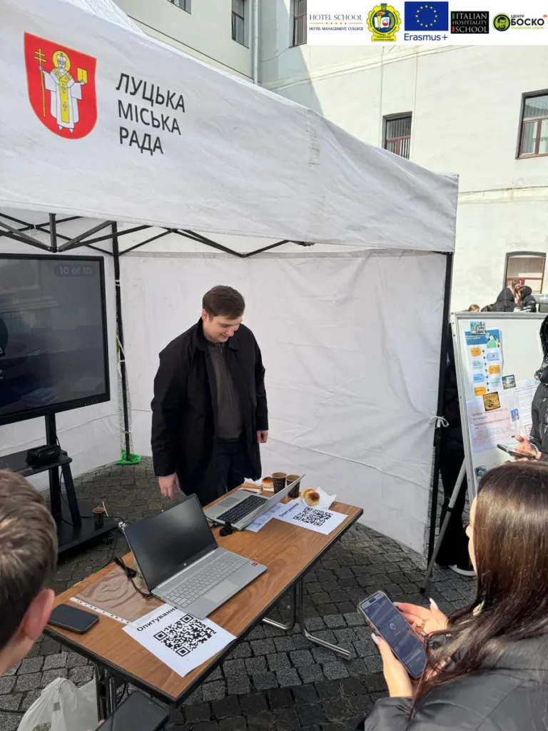 Однією з найвідвідуваніших і найцікавіших локацій фестивалю стала інтерактивна зона Волинського фахового коледжу НУХТ, де було представлено цифрові технології в індустрії гостинності та туризму. Гості мали нагоду не лише ознайомитися з найновішими тенденціями галузі, а й власноруч випробувати можливості штучного інтелекту, доповненої та віртуальної реальності, відчувши, як інновації змінюють сучасний світ сервісу.