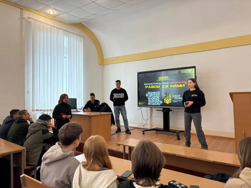 Оперуповноважена кіберполіції Ірина Цесар ознайомила студентів із найпоширенішими видами інтернет-шахрайства, що останніми роками активно поширюються серед молоді. Йшлося про фішингові сайти, підроблені акаунти, продаж неіснуючих товарів, крадіжки персональних даних і спроби отримання доступу до банківських рахунків через телефонні дзвінки чи оманливі повідомлення. Присутнім надали поради, як убезпечити власні дані, не стати жертвою шахрайських схем та діяти у разі підозрілої активності в мережі. Захід був спрямований на формування правосвідомості студентської молоді, уміння розпізнавати небезпеку та правильно реагувати у ситуаціях, пов’язаних із домашнім насильством, булінгом чи кіберзагрозами.