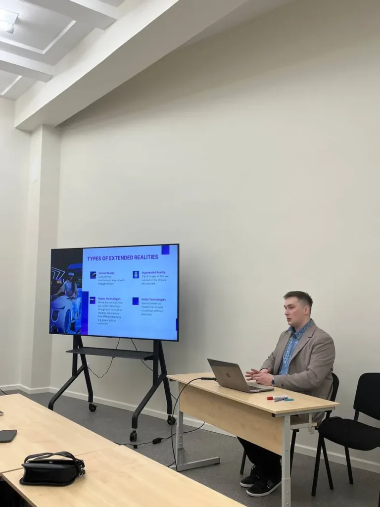 Під час лекції було висвітлено можливості використання AR/VR-технологій у готельному та ресторанному бізнесі, зокрема для оптимізації сервісу, навчання персоналу, покращення комунікації з гостями, створення інтерактивних презентацій послуг і підвищення рівня клієнтського досвіду. Окрему увагу було приділено практичним прикладам застосування AR/VR у роботі сучасних готелів: від віртуальних турів номерами та закладами до моделювання стандартних і нестандартних ситуацій у процесі обслуговування гостей.