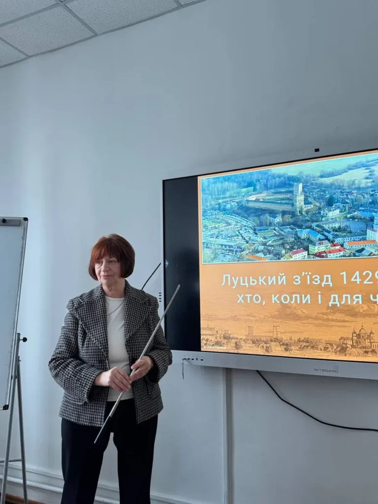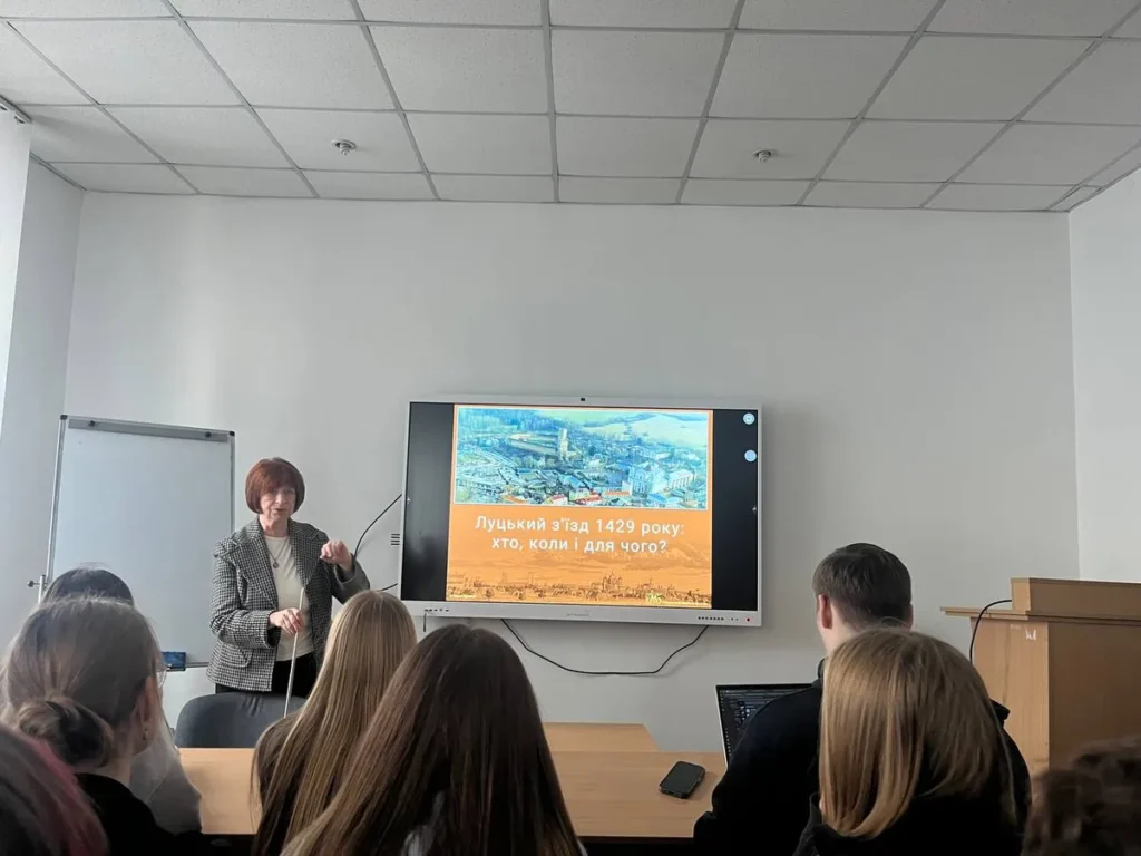 Під час зустрічі лекторка розкрила історичний контекст однієї з найважливіших подій середньовічної Європи, що відбулася у Луцьку. Студенти дізналися про ключових учасників Луцького з’їзду, політичні мотиви його скликання, значення події для розвитку міжнародних відносин та формування іміджу Луцька як центру європейської дипломатії XV століття.
