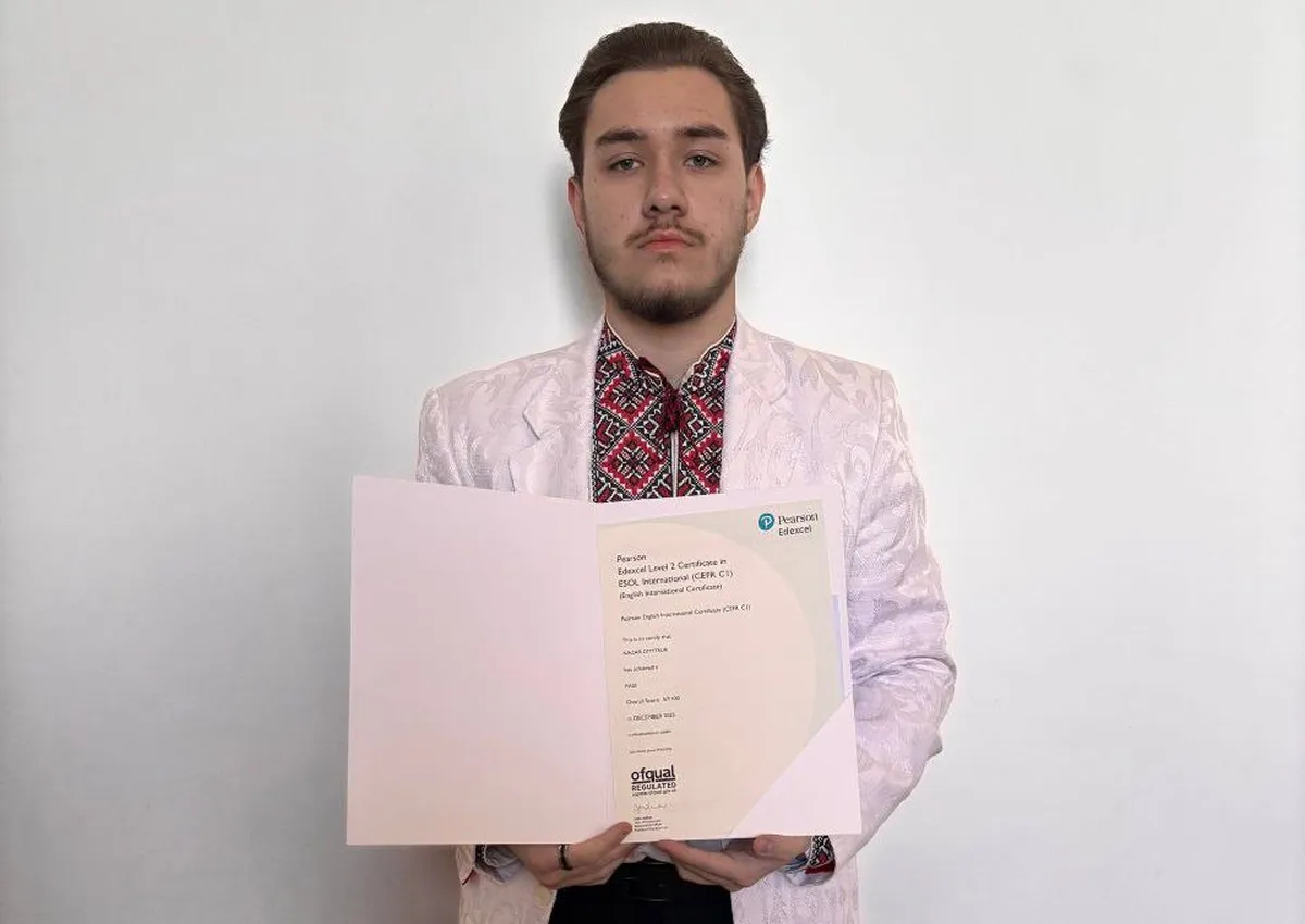 Пишаємося успіхами наших студентів не лише у профільних дисциплінах, а й у вивченні іноземних мов! Щиро вітаємо Дмитрука Назара, студента спеціальності «Інженерія програмного забезпечення», із вагомим досягненням — успішним складанням міжнародного іспиту Pearson Edexcel Level 2 Certificate in ESOL International.