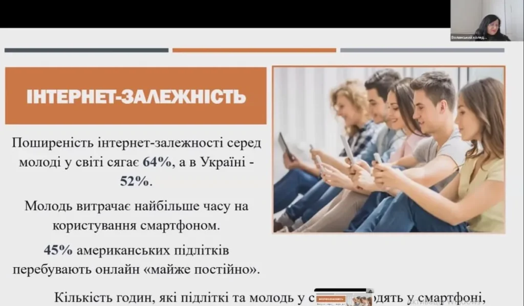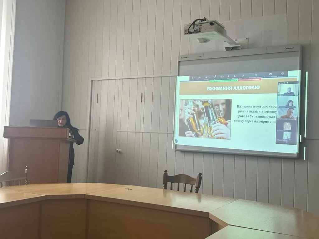Викладач охорони праці та безпеки життєдіяльності, Неля Табун презентувала дослідження щодо молодіжного середовища та соціальних небезпек, розповіла про причини, наслідки та ефективні шляхи подолання цих негативних явищ у нашому суспільстві. Особливу увагу було приділено профілактичній роботі та формуванню безпечної поведінки молоді у коледжі.