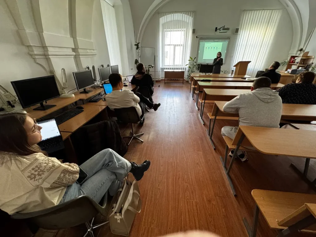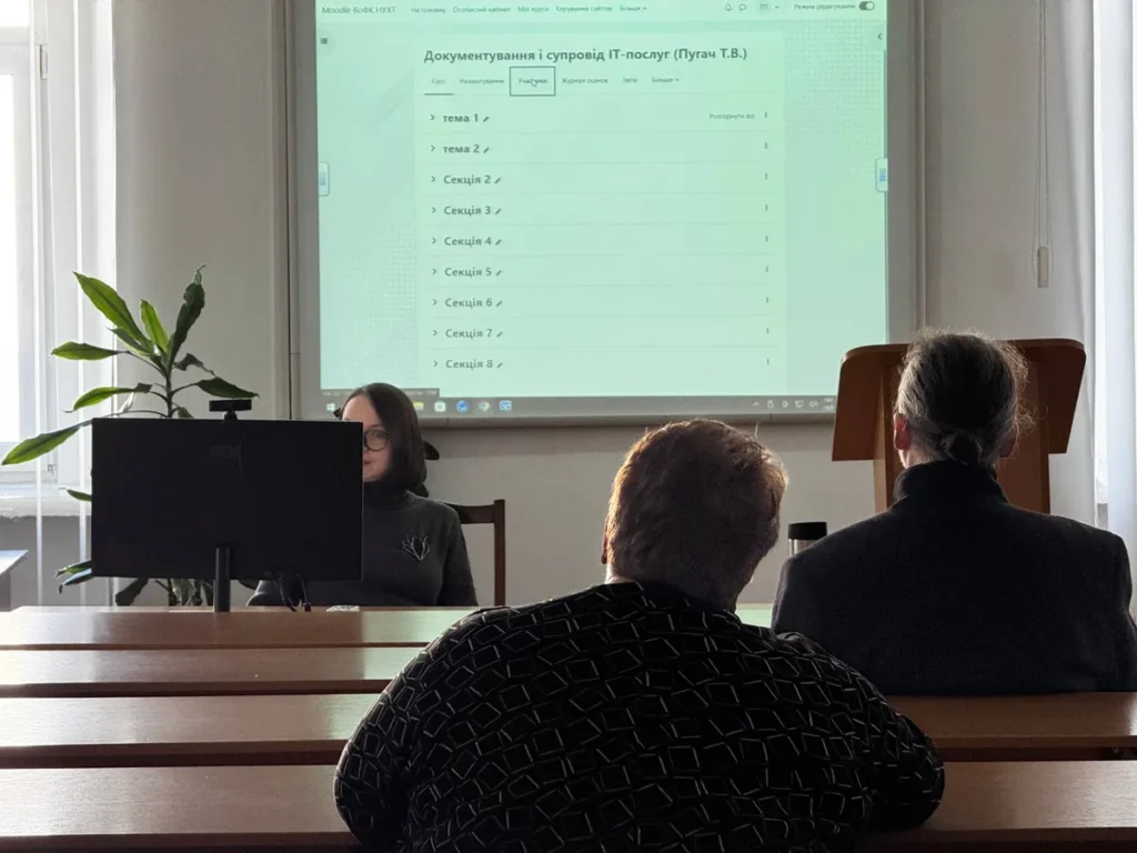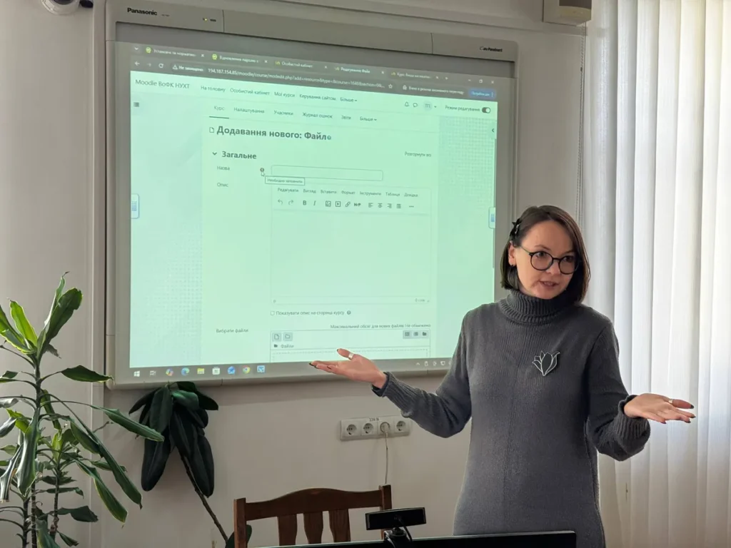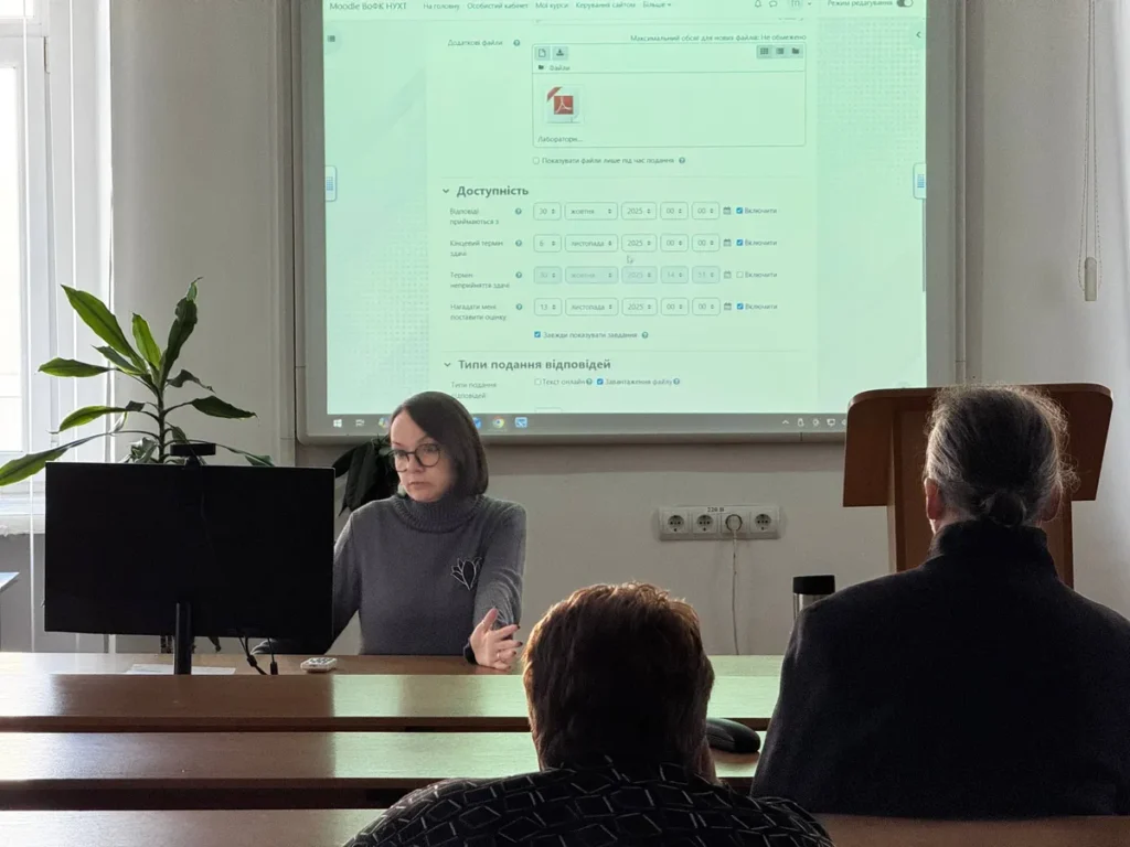 Тетяна Пугач, завідувачка лабораторією електронних навчальних ресурсів, провела чергове заняття Школи молодого педагога з оглядом на можливість практичного використання платформи MOODLЕ.