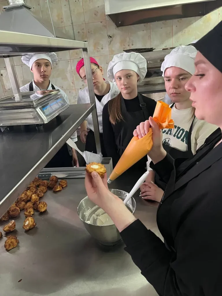 Тематика заходу «Профітролі: секрети ідеального заварного тіста» привернула активну увагу студентів, оскільки заварне тісто є однією з базових, але водночас технологічно складних основ у кондитерській справі. Під час майстер-класу здобувачі освіти ознайомилися з особливостями технології приготування заварного тіста, зокрема: правильним підбором та співвідношенням сировини; дотриманням температурного режиму на різних етапах приготування; технологією заварювання борошна та внесення інших компонентів; критеріями визначення готовності тіста до відсаджування; типовими помилками та способами їх уникнення.