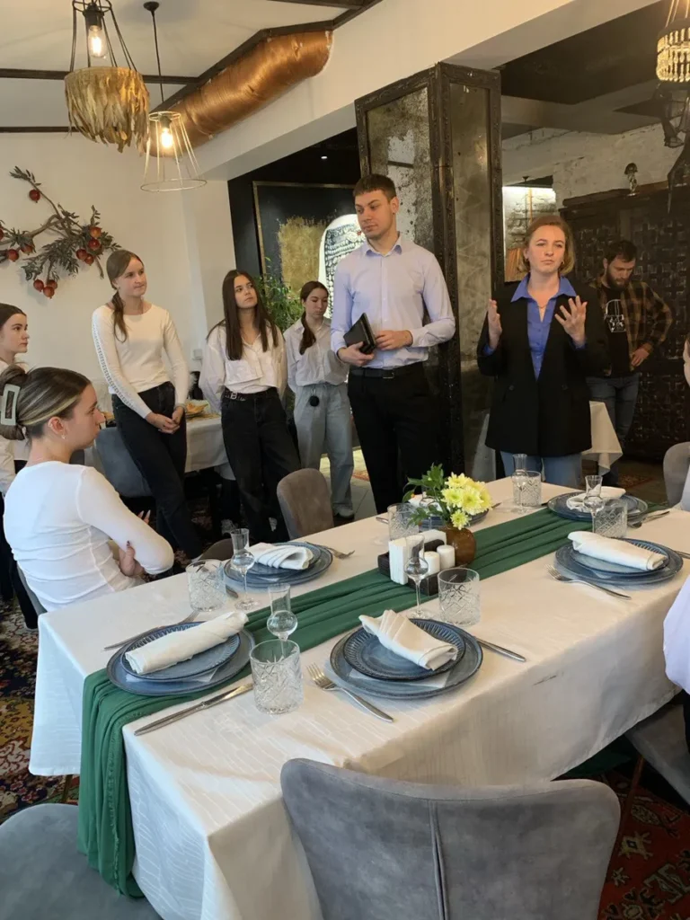 As part of a series of classes from stakeholders in the educational professional program “Hotel and Restaurant Business,” students had the opportunity to participate in a practical class held at the Georgian restaurant “Suli Guli” in Lutsk. The class was led by Alexander Batievich, a graduate of the program, a hospital;ity professional, and a successful restaurant business specialist, who shared his own experience of working in a modern hospitality establishment with the students.