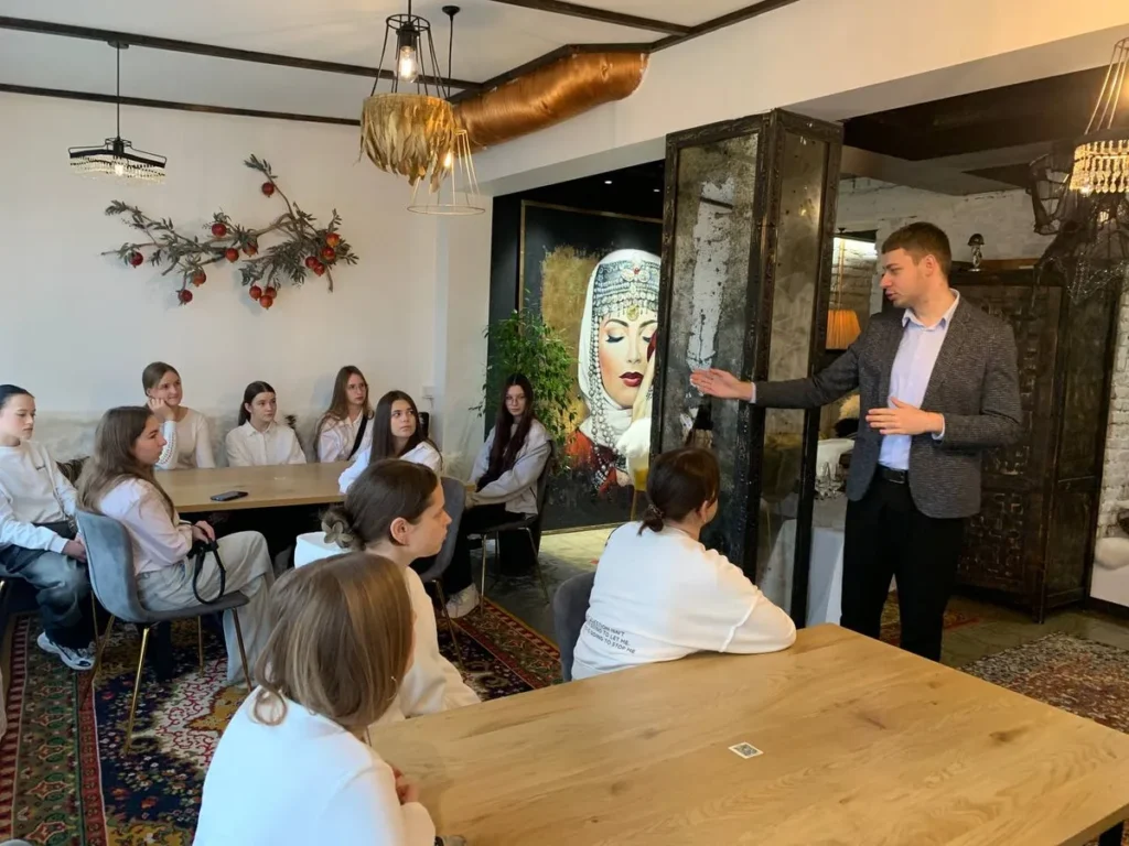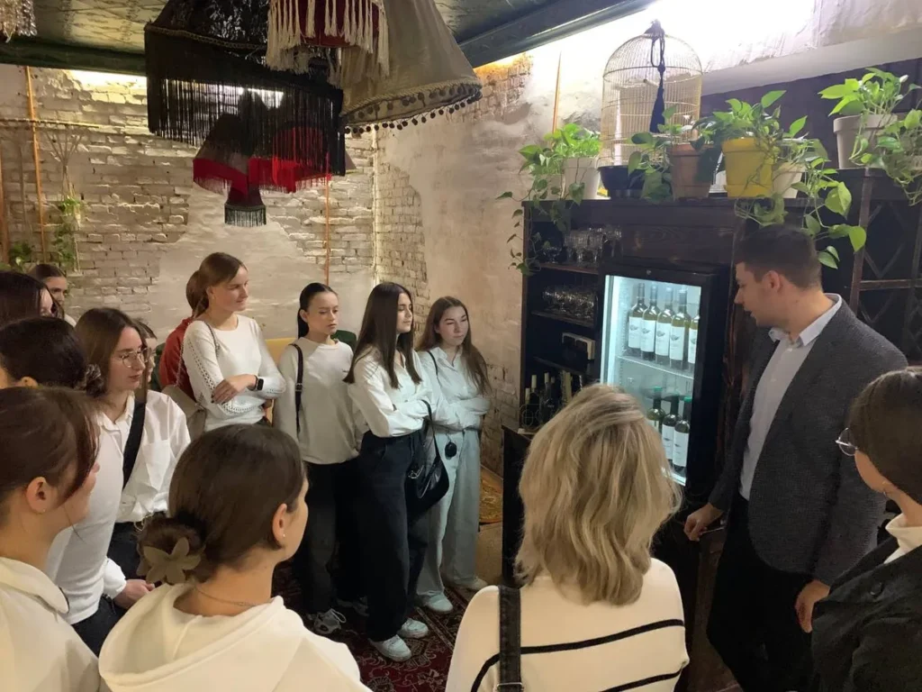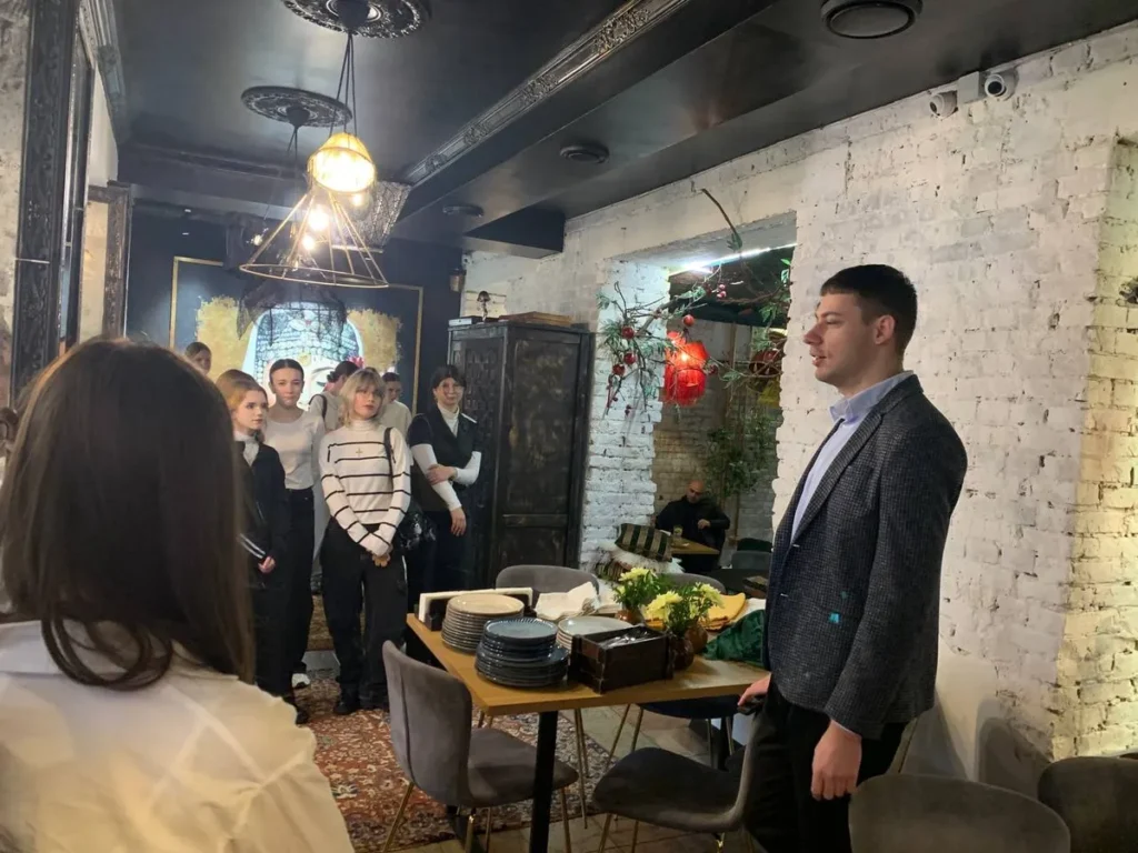 As part of a series of classes aimed at deepening the practical training of students enrolled in the educational and professional program “Hotel and Restaurant Business,” an educational excursion was held to the Georgian cuisine restaurant “Suli Guli” (Lutsk, Volyn region). The event was conducted by Oleksandr Batievich, a stakeholder, a hospitality expert, and a college graduate who is now successfully working in the restaurant business. The purpose of the class was to familiarize students with the organization of a modern restaurant business, its concept, service standards, and the specifics of operating in the competitive HoReCa market.