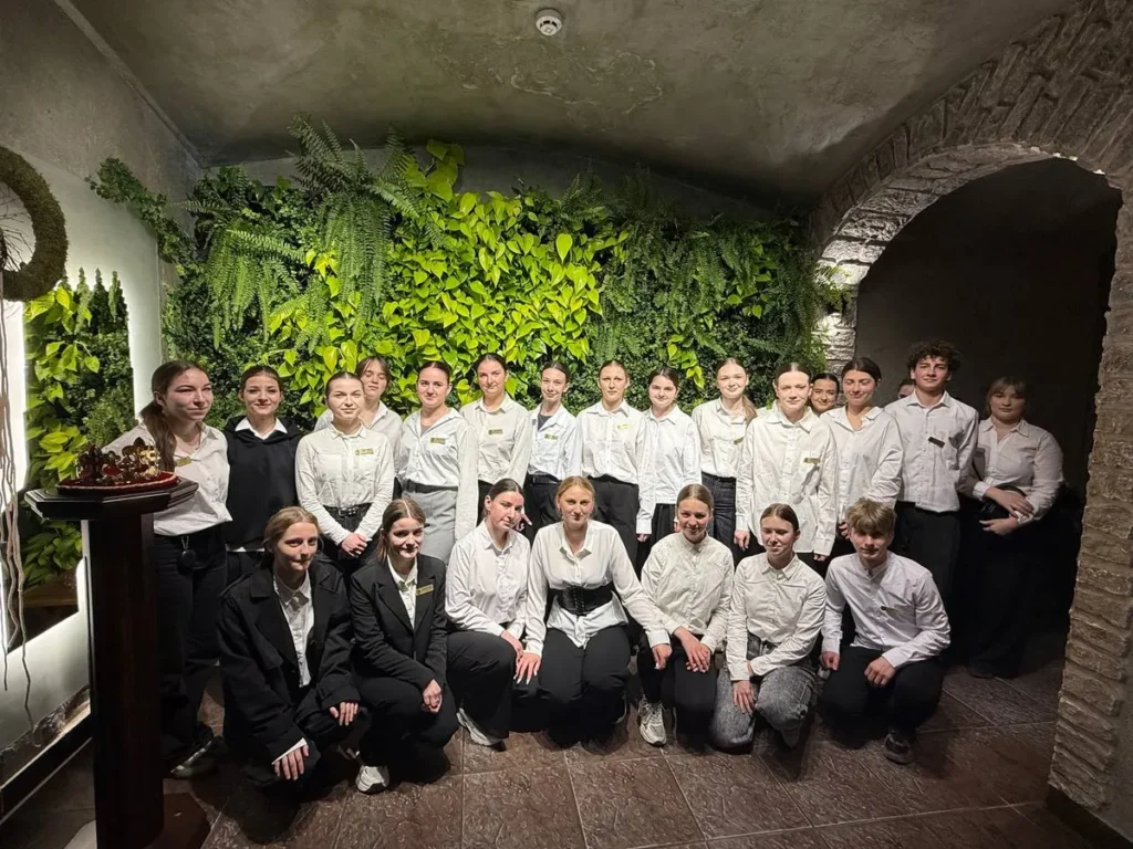 У межах вивчення освітньої компоненти «Ресторанна справа» здобувачі освіти другого курсу освітньо-професійної програми «Готельно-ресторанна справа» здійснили навчальну екскурсію до ресторану Корона Вітовта. Захід відбувся у супроводі викладачок фахових дисциплін – Сус Юлії та Іщик Тетяни.