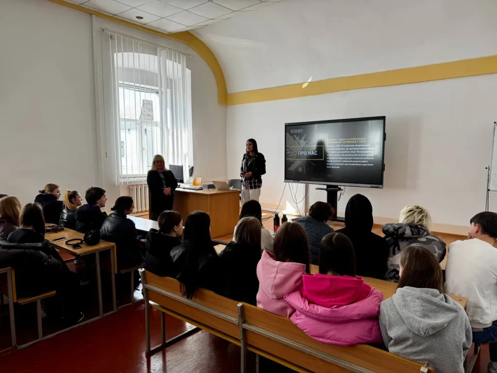 З метою розширення співпраці з роботодавцями були запрошені представники корпорації ROSHEN — однієї з найбільших кондитерських компаній України та світу. Гості детально розповіли про історію заснування та розвиток компанії — від перших кроків до становлення потужного міжнародного бренду з багаторічними традиціями. Студенти дізналися, де розташовані основні виробничі потужності корпорації, яка географія збуту продукції та до яких країн світу експортуються солодощі під маркою ROSHEN. Це дало змогу краще усвідомити масштаб підприємства та його місце на світовому ринку.